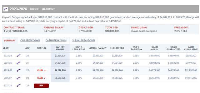这场比赛之前,爵士队官方发布将执行乔治26-27赛季的球队选项,22岁的乔治是2023年首轮16顺位,他此前的两个赛季都是打二号位,这个赛季球队将他摆在了一号位上,但他还是有一颗SG的心。